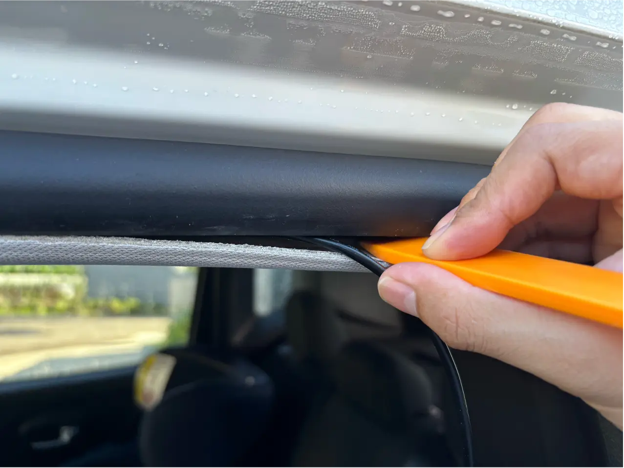 Aピラー(フロントピラー)を内張はがしで取り外して、その中にケーブルを配線させましょう。